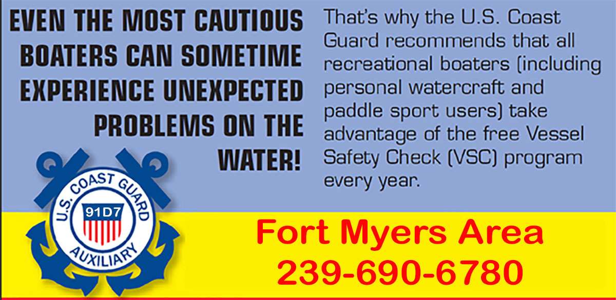 They do not, in any way, constitute an endorsement of the linked pages or any commercial or private issues or products presented there. We cannot make any warranty or representation concerning the content of these sites, or secondary sites from the pages to which they link. US Coast Guard Auxiliary Fort Myers Beach.